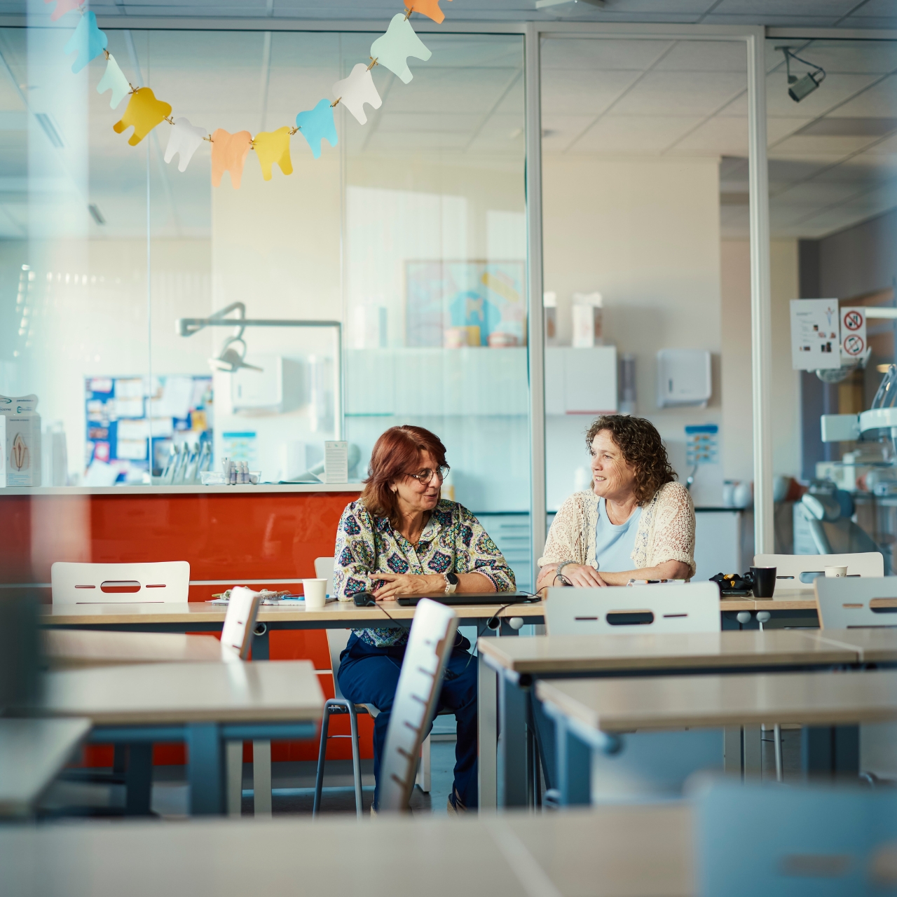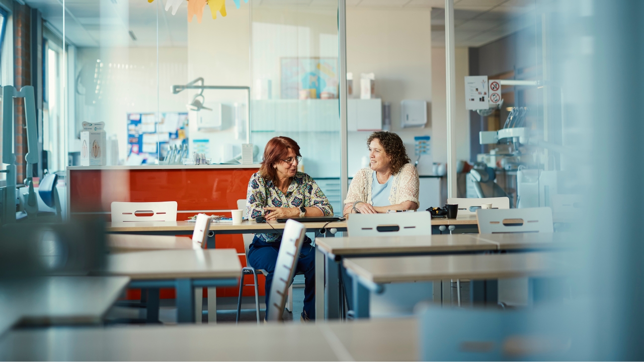 Jolanda: ‘We lopen elkaar vaak voorbij in de gangen van de school en geregeld probeer ik te vragen hoe het gaat. Maar ik hoop vooral dat Petra de ruimte voelt om altijd aan te kloppen als er iets is. Dat vertrouwen probeer ik als werkgever te creëren.’